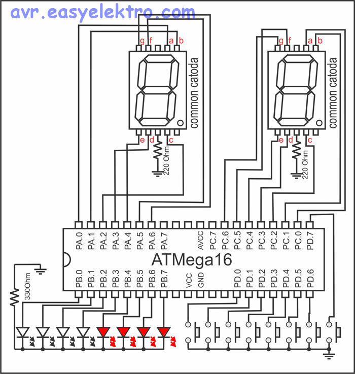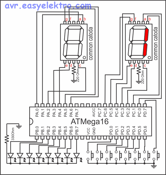 Buatlah program untuk menghasilkan nyala 7segmen me pada skema berikut. ctt: terdapat 10 soal./ soal no. 1-3